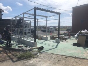 車庫と物置を一つに。ガレージ×カーポート一体型の「ハイブリッド倉庫」施工中継!